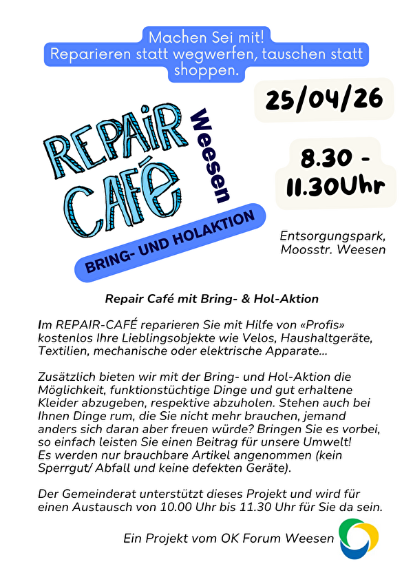 Repair Café mit Bring- & Hol-Aktion